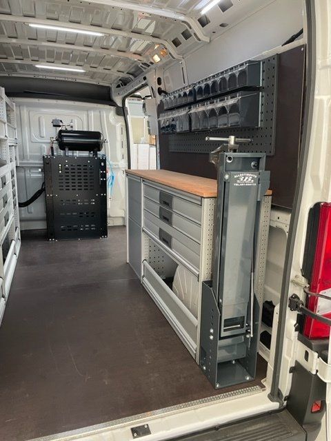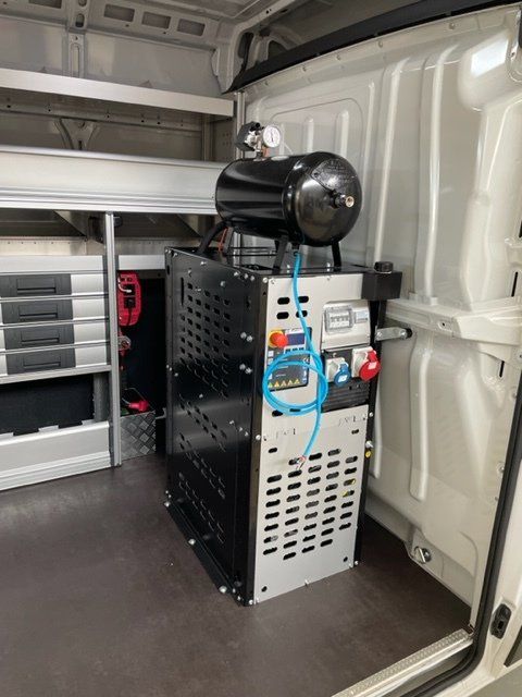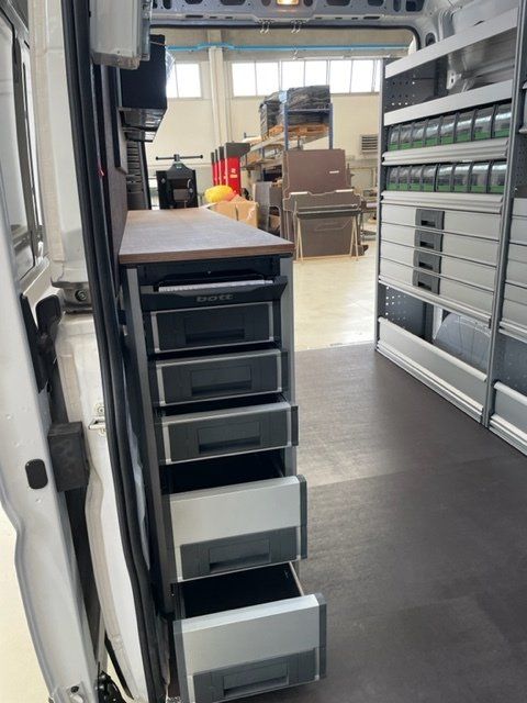 Per l'allestimento di officine mobili personalizzate ogni veicolo viene personalizzato con scaffalature, cassetti e tavoli da lavoro, compressori e molte altre attrezzature che rispondono perfettamente alle richieste della clientela.